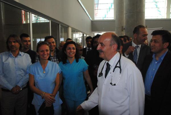 Sağlık Bakanı Müezzinoğlu, protokol üyeleriyle birlikte kırmızı kurdeleyi keserek, açılışı gerçekleştirdi. Bakan Müezzinoğlu, hastaneye gezerken çekim yapan kameramanlara elleriyle börek ikram ederek, 'Çekimi her zaman yaparsınız börek yiyin' dedi. Müezzinoğlu, gazetecilerin İzmir Tabip Odası'nın Çiğli Eğitim ve Araştırma Hastanesi'nin tamamlanmadan hizmete açıldığını yönündeki açıklamasını hatırlatarak soru sorması üzerine şu açıklamayı yaptı: 'İzmir Tabip Odası'na teşekkür ediyorum. Necip Fazıl'ın bir sözü vardır. 'Ey rakibim sen bana lazımsın' der. Onlar bizi daha çok teyakkuza sürüyor. Onlar bize lazımlar. Onlar bizi tahrik ettikçe biz daha çok çalışıyoruz. Yönetime şunu söylerim. Ankara Tabip Odası bu geçtiğimiz cumartesi terör eyleminden sonra kısa mesajlı kan çağrısı yaptı. İki hastaneye hastaları yönlendirdi. İzmir Tabip Odası'nın sesi çıkmadı. Acille tedavi yapmakla uğraşan ve hekimleri kan bağışı için duygusal olarak yönlendirdiği çağrıyla tedaviyi aksatırken eş odaya ses çıkarmadı. Bir ay içinde diğer hizmetlerin tamamı gelmiş olacak. Herhangi bir vatandaş bir eve taşındığında eksiksiz taşınması mümkün olur mu? Yok öyle bir şey. Gezin hastaneyi bitmiş bina mı bitmemiş mi onlara da söyleyin.'