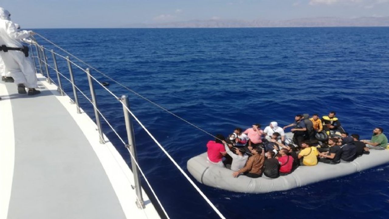 Sahil Güvenlik Komutanlığı ekipleri, botlarda düzensiz göçmenlerin olduğu bilgisi üzerine bölgeye gitti.
