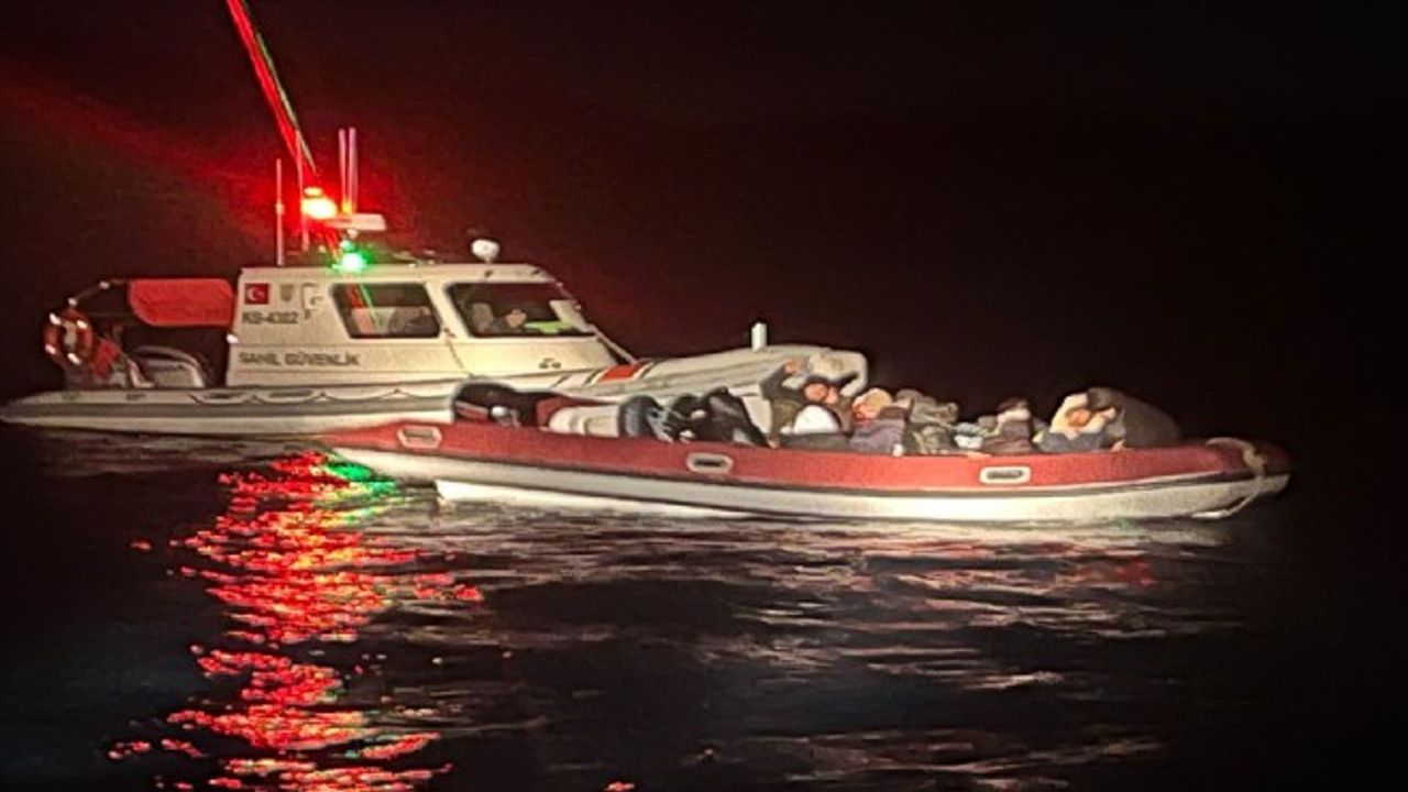 Ekipler, Yunanistan unsurlarınca Türk kara sularına itilen lastik bottaki 13 düzensiz göçmeni bota alarak karaya çıkardı.