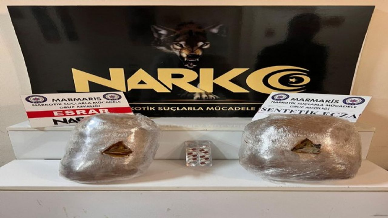 Cumhuriyet Başsavcılığı koordinesinde Marmaris otogarında otobüsten inen Yıldız'ın eşyaları narkotik köpeği 'Coco' ile arandı. Coco'nun tepki verdiği şüphelinin sırt çantasında 3 kilo kubar esrar ve 9 sentetik ecza ele geçirildi.