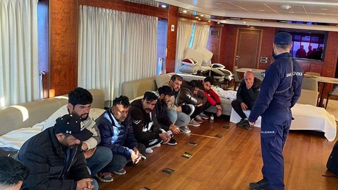 Ekiplerce durdurulan ticari yat ve fiber karinalı lastik botta yapılan aramada, 4'ü çocuk 24 düzensiz göçmen ile 3 göçmen kaçakçısı şüphelisi yakalandı.