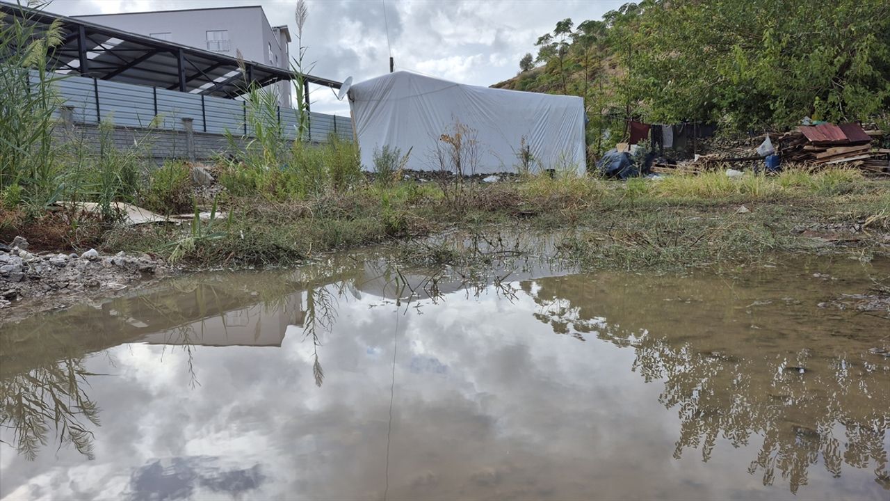 Yerbelen Mahallesi'nde 12 kişinin yaşadığı 3 çadırı ilçede etkili olan yağış nedeniyle su bastı, eşyalar kullanılamaz hale geldi.