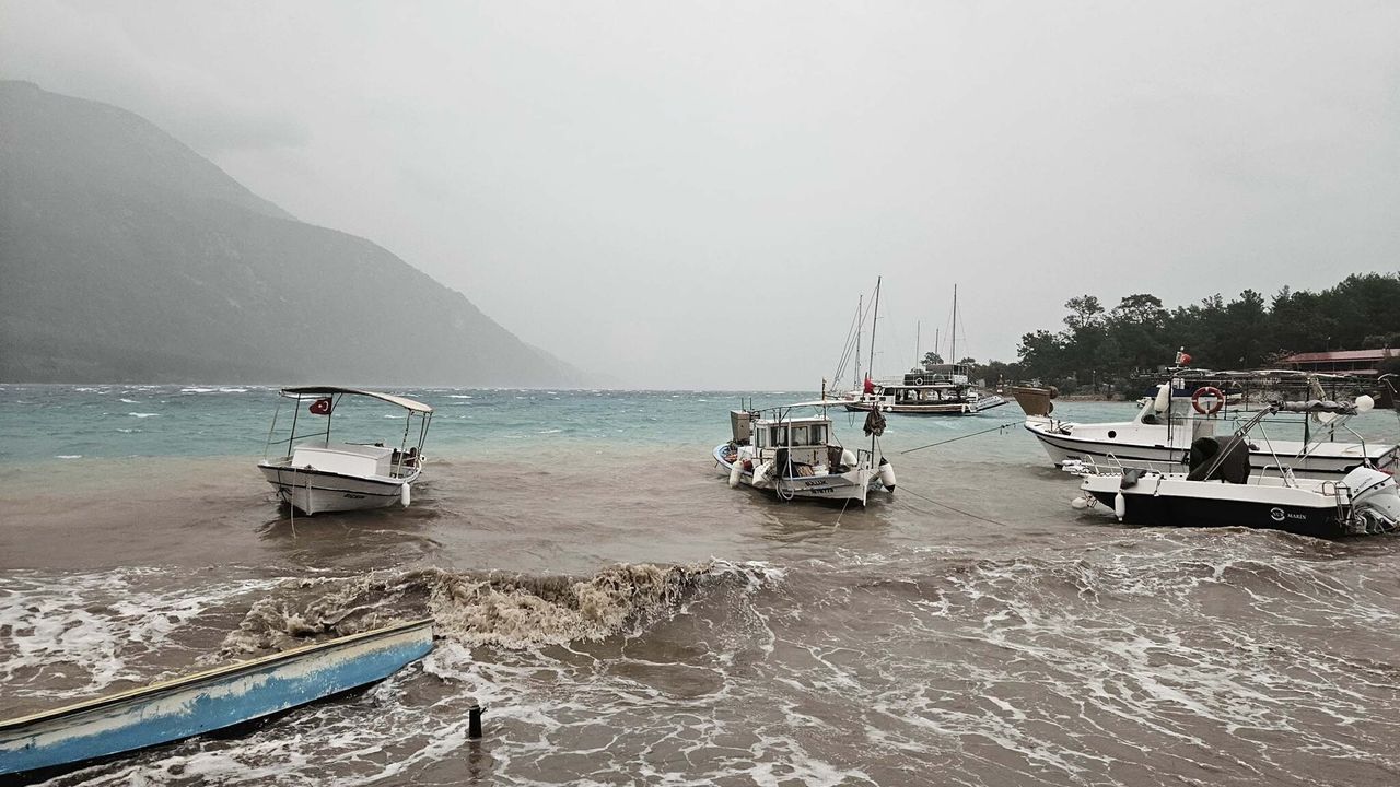 Meteoroloji 4'üncü Bölge Müdürlüğü'nün uyarısının ardından Muğla'da sağanak ve fırtına etkili oluyor. Akbük'te sabah etkisini arttıran kuvvetli fırtına, kıyı şeridinde metrelerce yükselen dalgalara neden oldu. Dalgalar zaman zaman yola kadar taştı. Fırtınadan en çok etkilenen balıkçılar oldu. Balıkçı teknelerinin bağlı bulunduğu küçük iskeleler yıkıldı. Balıkçıların açıktaki teknelere çıkmak için kullandıkları sandallar da dalgaların etkisiyle battı. (DHA)