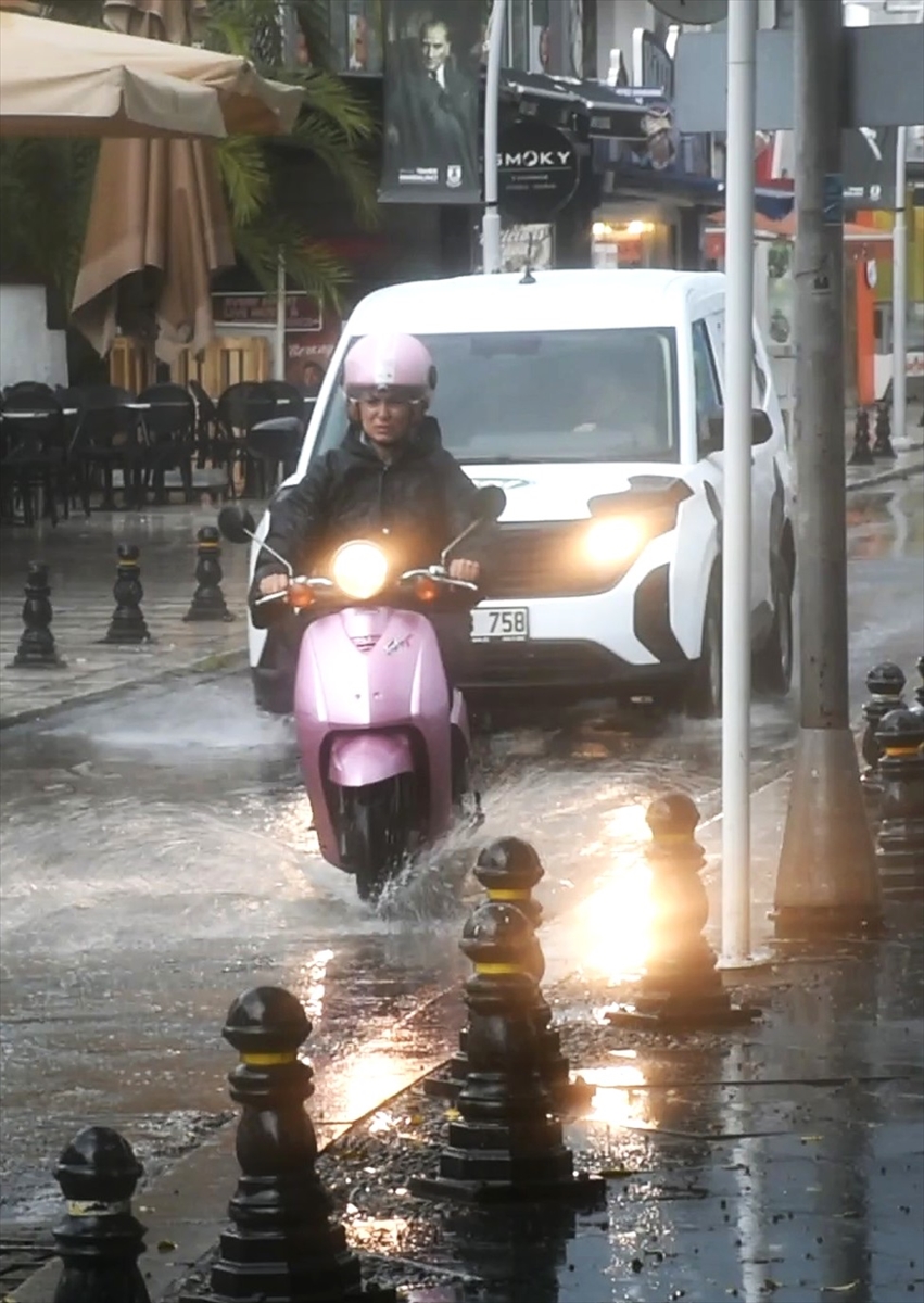 Marmaris'te sabah saatlerinden itibaren etkisini gösteren sağanak günlük yaşamı olumsuz etkiledi.
