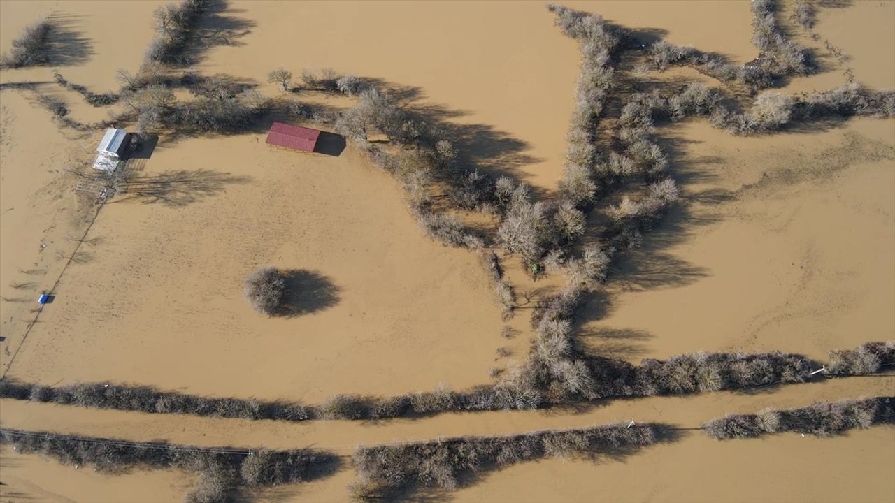 Düğerek Mahallesi'nde sular altında kalan tarım arazileri dronla görüntülendi.