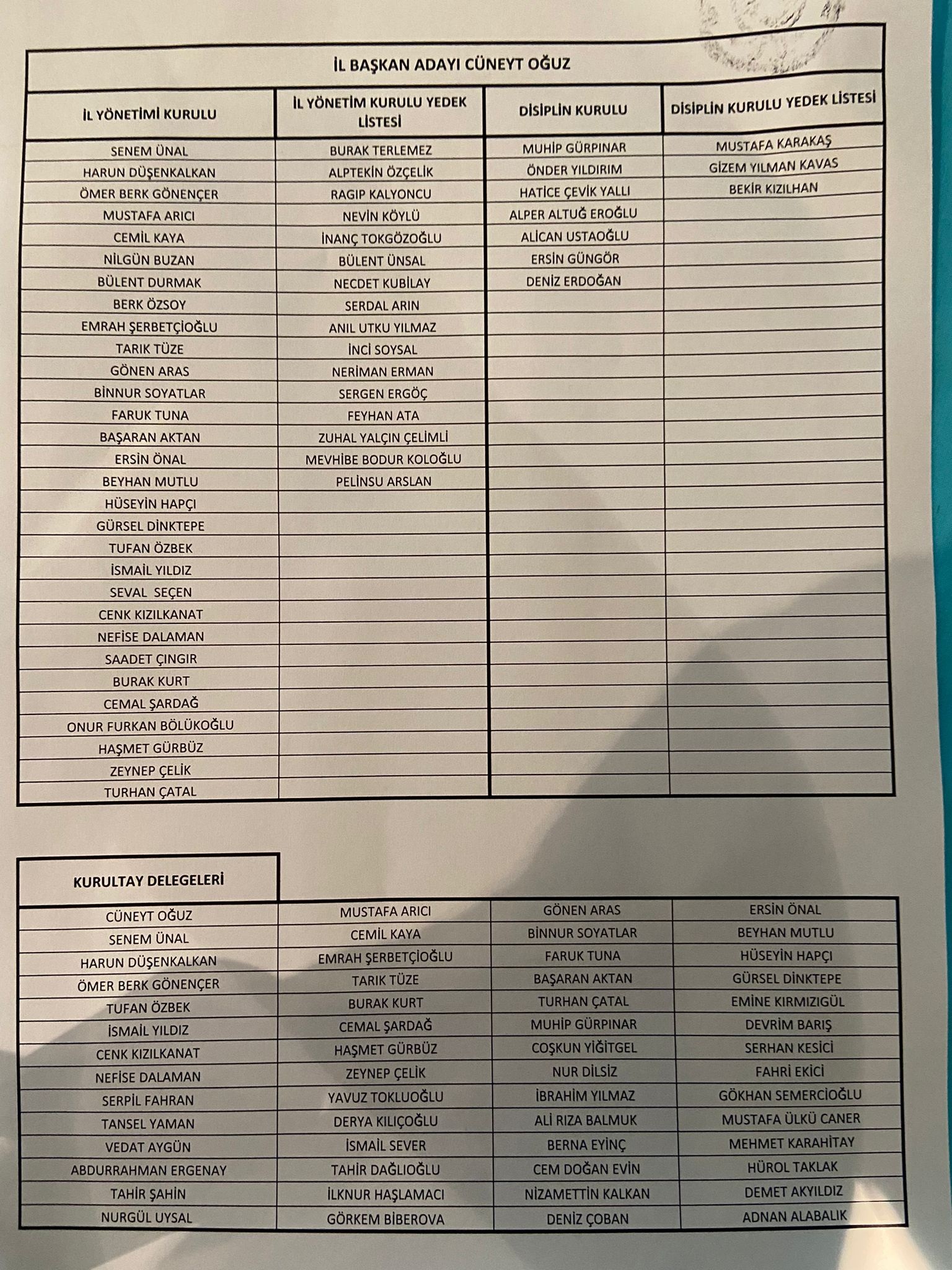 ?Cünayt Oğuz'un oluşturacağı yeni yönetimde görev alanlar isimler belli oldu.