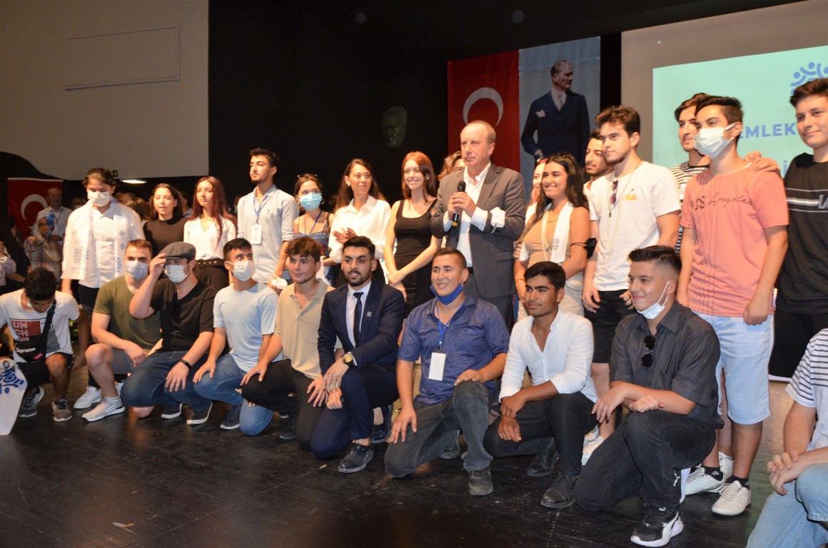 Coşkulu bir kurultay yapmayı hedeflediklerini söyleyen İnce, 'Önümüzde kurultay var 18 Eylül… Sadece delegeler gidecek diye bir algı var. Çoluk çocuk hep birlikte orada bir şenlik olacak. Oradan Türkiye'ye umut fışkırtacağız, ayağa kaldırtacağız. Törenler, kurultaylar bir başlangıcı diriltmek içindir. Başlangıcı yürekleri umutlandırmak, heyecanlandırmak içindir. Herkesin partisi var bu ülkede. Sadece Atatürkçülerin partisi kalmadı. Çünkü attılar hepsini. Bir siyasi partinin duruşu olur. Biri diyor ki '2 yıl içinde geri göndereceğiz, diğeri ben mültecilere bakarım, flamingoların da başkanıyım. Diğeri de diyor ki ben suya 10 kat zam yapacağım. Memleket Partisi'nin duruşu şudur; İlk sınırları kapatacağız. İki bayramda gezmeye giden geri gelemez. Şiddete bulaşan hemen sınır dışı, hepsini kayıt altına alacağız. Askerler var, duvarlar var, nasıl giriyorsunuz siz? Demek ki izin veren var. Duruşunuz olacak' şeklinde konuştu.