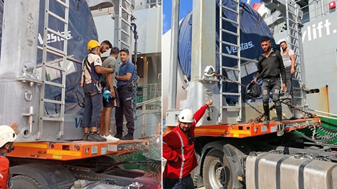 Liman sahasında bulunan yüklerin kontrolü sırasında bir rüzgar türbini kanadının içinde 4 kişinin bulunduğu belirlendi.