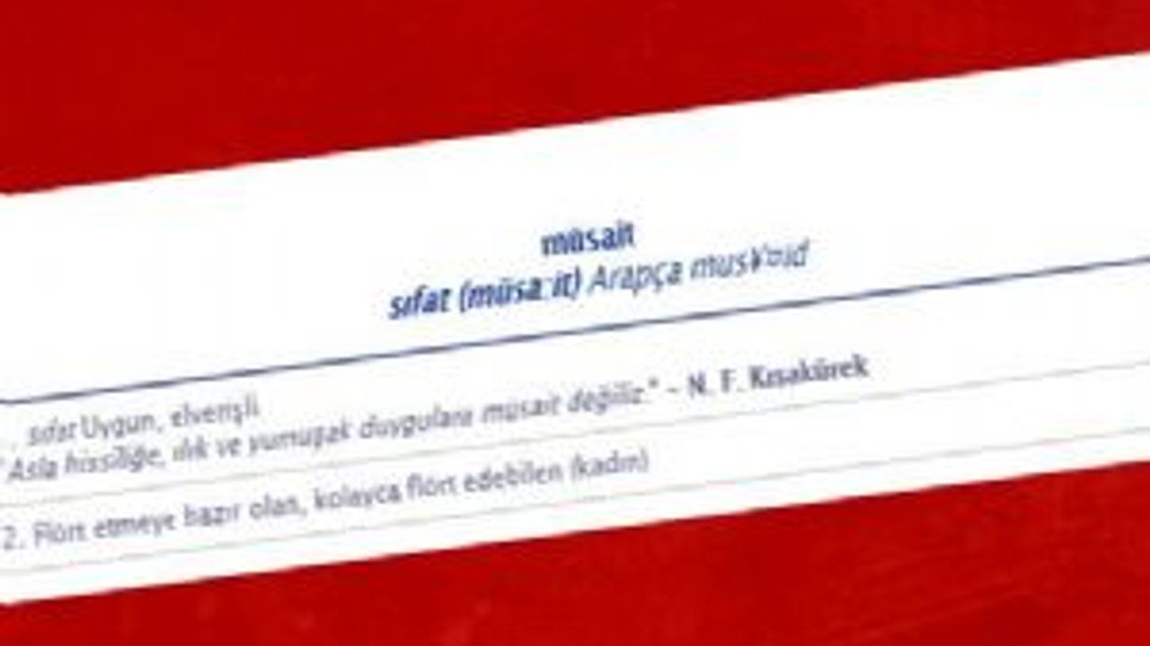 TDK'nın çevrimiçi sözlüğünde müsait, öncelikle 'uygun, elverişli' olarak tanımlanıyor. İkinci tanımda ise 'flört etmeye hazır kadın' ifadesine yer veriliyor.