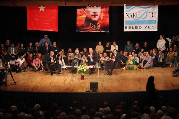 Programın açılışında konuşan Uğur Dündar, Cumhuriyet'in aydınlık kenti, güler yüzlü insanların yaşadığı İzmir'e yerleşmeyi tercih ettiğini belirtirken, İzmir'de olmaktan büyük gurur duyduğunu ifade etti. Dündar ' Artık aynı mahallenin insanlarıyız. İlk defa oturduğum semtten bir program yapıyorum. Çok Heyecanlıyım. Ailem adına konuşuyorum, İzmir geldiğim ve Narlıdere'de oturduğum için çok mutluyum. Tüm ömrüm boyunca burada oturmuş hissediyorum' dedi. Uğur Dündar programda ilk olarak sözü Sanatçı Edip Akbayram'a verdi. Akbayram 'Edip Akbayram Siyasetçi değilim sanatçıyım ama Uğur beyi kıramadım ve programa katıldım. Türkiye tarihinde beni en çok etkileyen şey tabii ki 12 Eylül darbesidir. Demokrat devrimci birçok insanın kanına girmiştir ve bu ülkeyi 30 yıl geriye göndermiştir. 5-6 yıl sanatımı icra edemedim ama satılmadım ve kimse beni satın alamadı. Her akşamın bir sabahı vardır. Bu alkışlara hiç kimse ihanet edemez' dedi. Akbayram, Uğur Dündar'ın Türkiye'de Sanatçı ve sanatçı duruşu ile ilgili ibretlik bazı olayların yaşandığını hatırlatması üzerine ise 'bizim bildiğimiz kimsenin önünde eğilmez siyasi veya başka bir gücün önünde eğilen sanatçı değildir. Bana da o sanatçı ile alakalı bir sorula geldi ama bazen susmakta bir tokattır' dedi.