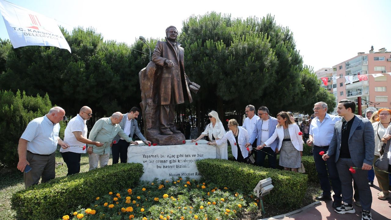 Karşıyaka Belediyesi, 3 Haziran 1963 tarihinde hayata veda eden dünya şairi Nazım Hikmet’i, 62. ölüm yıl dönümünde törenle andı. 80. Yıl Cumhuriyet Parkı’ndaki Nazım Hikmet Heykeli önünde düzenlenen törene Karşıyaka Belediye Başkanı Yıldız Ünsal, Karşıyaka Kent Konseyi Başkanı Dilek Karcı, meclis üyeleri, muhtarlar, sivil toplum örgütlerinin temsilcileri, şairler, yazarlar ve vatandaşlar katıldı. Karşıyakalı şair, Şiir Atölyesi’nin yürütücüsü Veysel Çolak, törende yaptığı konuşmada Nazım’ın mücadeleyle geçen hayatını ve eşsiz edebi kişiliğini anlattı. Belediye Meclisi Üyesi Ali Ekber Güneş ve Şiir Atölyesi öğrencileri, usta şairin ölümsüz şiirlerini okudu. Nazım Hikmet’in eserlerinden bestelenen şarkıları seslendiren Karşıyaka Kent Konseyi Attila İlhan Korosu da konuklara duygu dolu anlar yaşattı.