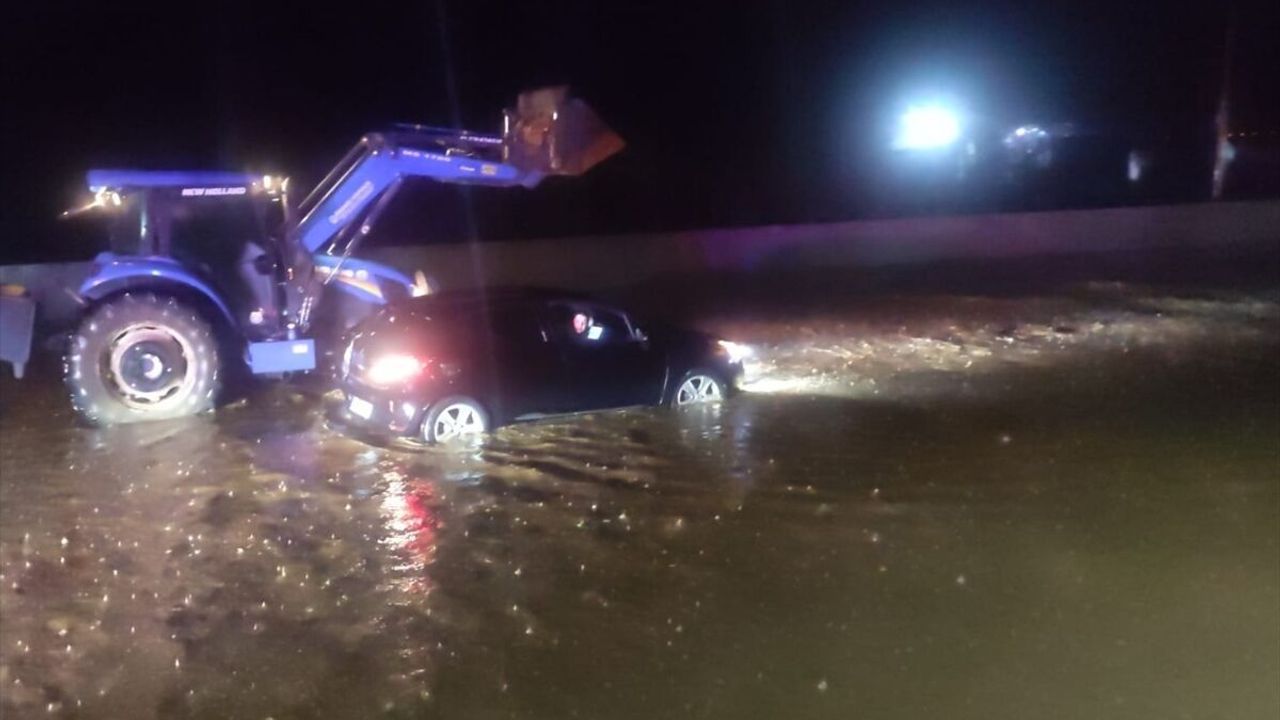 Trafik ekipleri, güzergahı kullanan sürücüleri durdurarak su baskını ve yolda kalma riskine karşı uyarılarda bulundu.