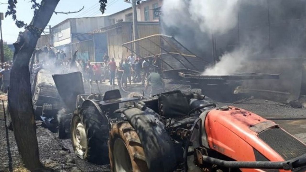 Ekiplerce söndürülen yangın iş yerinde hasara neden oldu, 3 traktör kullanılamaz hale geldi.