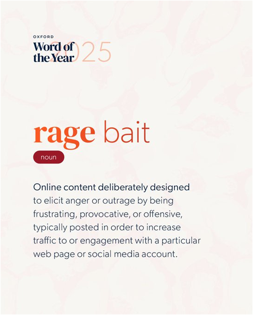 Öfkeniz bizim için çok değerli… Dijital dünyanın yeni çağrısı… Oxford’un 2025 için “Yılın Kelimesi” olarak seçtiği kavram, çağımızın gerçeklerini suratımıza söylüyor:“ragebait”, yani öfke tuzağı. Evet, yanlış duymadınız. Artık öfkemiz, teknoloji şirketlerinin gözünde petrol kadar değerli bir kaynak. Belki de yakında borsada işlem görmeye başlar: “Bugün öfke endeksi, akşam saatlerinde yayılan bir video sonrası yüzde 14 yükseldi.”