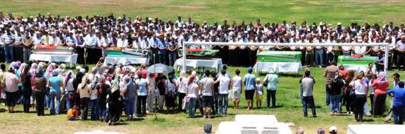 Milas Müftüsü Uğur Kocabaş, futbol sahasında masaların üzerine yan yana sıralanan tabutların önünde her işçi için ayrı cenaze namazı kıldırdı. Namaz ardından cenazeler, omuzlarda taşınarak yakındaki Güllük Belde Mezarlığı'na götürülerek, gözyaşları içinde toprağa verildi.(DHA)