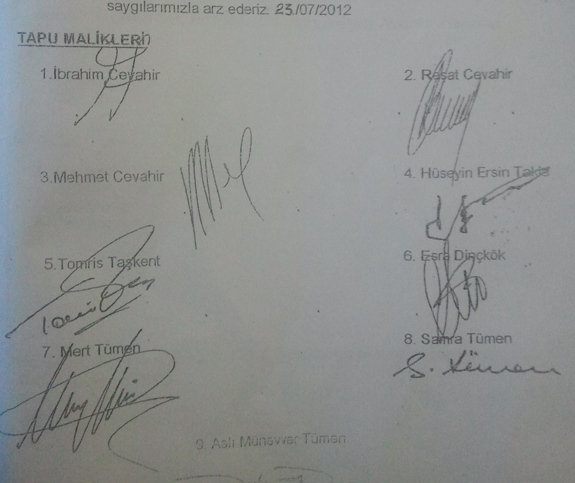 6292 Sayılı Orman Köylülerinin Kalkınmalarının Desteklenmesi ve Hazine Adına Orman Sınırları Dışına Çıkarılan Yerlerin Değerlendirilmesi ile Hazineye Ait Tarım Arazilerinin Satışı Hakkında Kanun'nun 7. Maddesi gereği yapılan talep başvurusunda, ' İşadamı İbrahim Cevahir, Cevahir'in kardeşi Mehmet Cevahir ve Reşat Cevahir yer alıyor. Türkiye'nin en önemli inşaat şirketlerinden biri olan Kuzey Afrika ve Ortadoğu'da önemli yatırımlar yapan STFA Holding Onursal Başkanı Tomris Taşkent, TML İnşaat Kurucu Ortağı Eser Tümen'in eşi Samra Tümen, kızı Aslı Münevver Tümen ve oğlu Mert Tümen'in adları yer alıyor. Yine yapılan başvuruda Tümen'in evli kızı Akkök Holding Yönetim Kurulu Başkanı Raif Dinçkök'ün eşi Esra Dinçkök ve Türkiye-Libya İş Konseyi Başkanı Hüseyin Ersin Takla gibi isimler de bulunuyor.