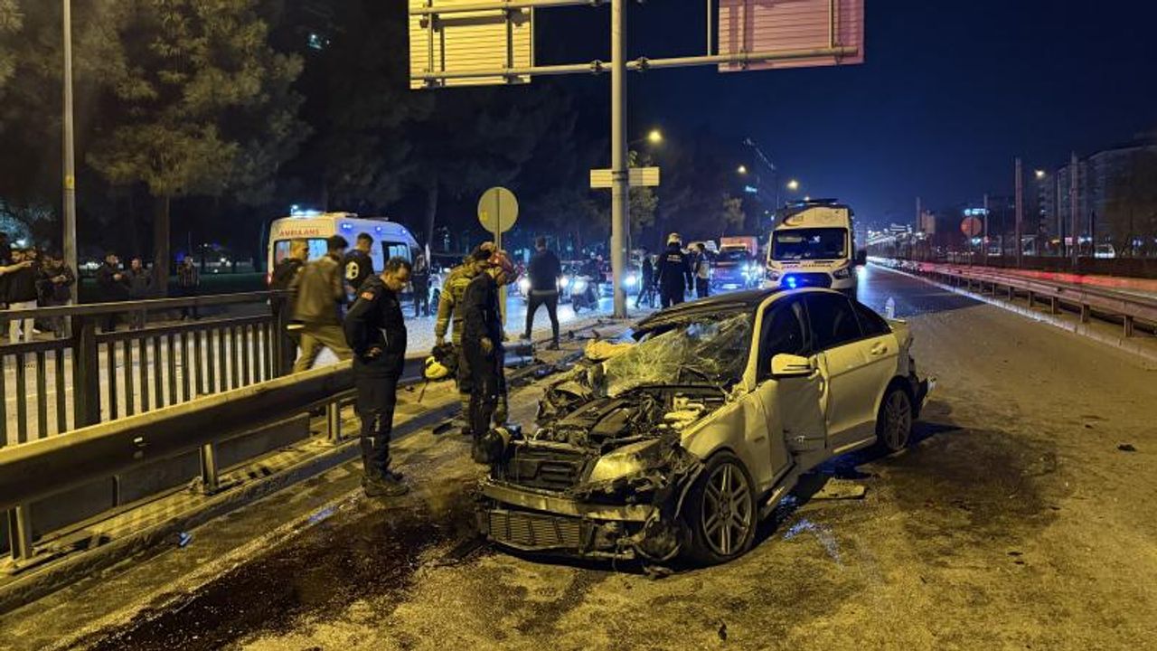 Bursa'nın Nilüfer ilçesinde bir otomobil, İzmir Yolu Caddesi Nilüfer Metro İstasyonu mevkisinde trafik levhası direğine, ardından servis minibüsüne çarptı.