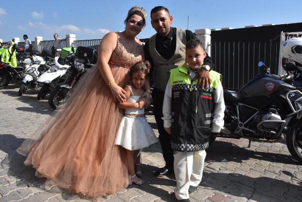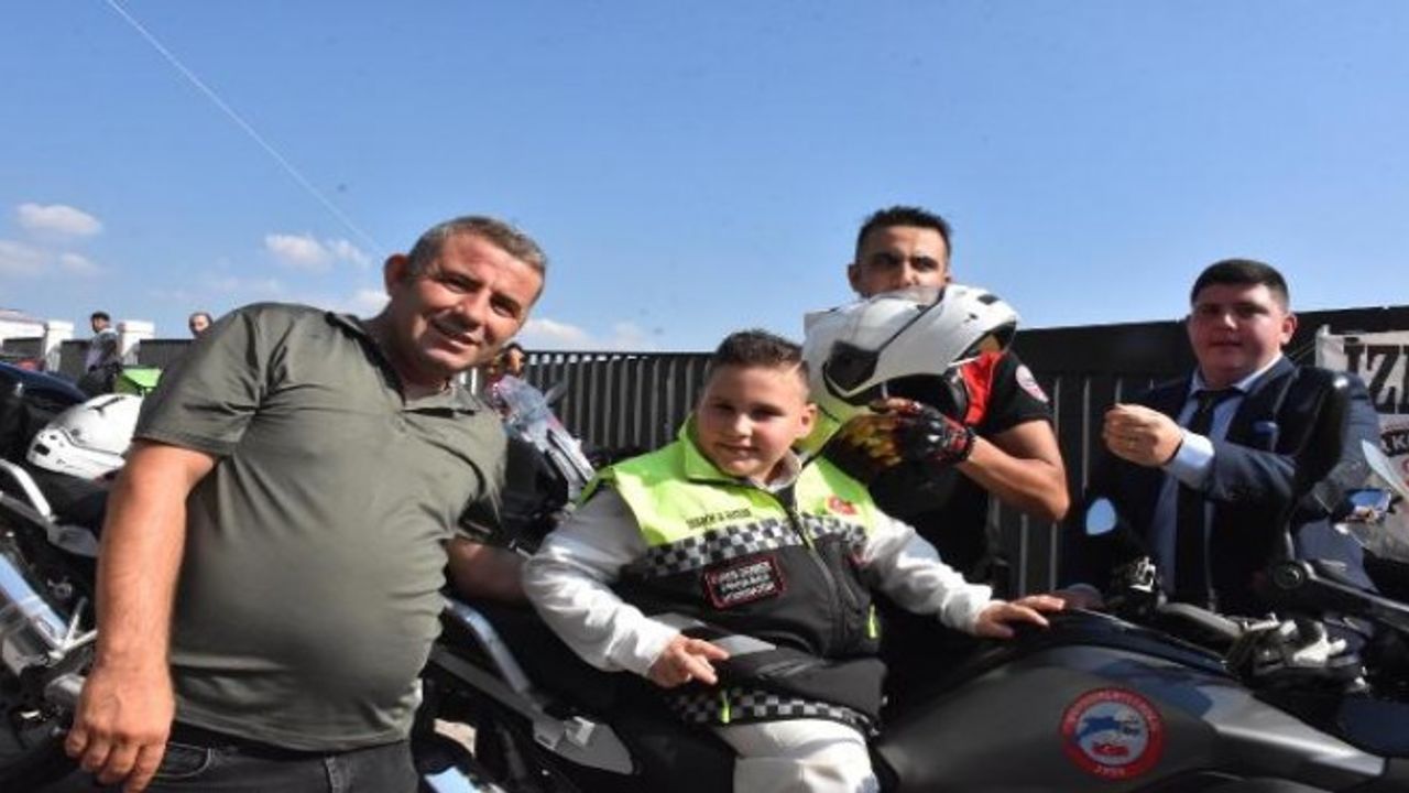 Konak ilçesi Çınartepe Mahallesi'nde yaşayan ev kadını Özlem (31) ve kurye Onur Yurdakul (31) çiftinin 2 çocuğundan büyüğü Rüzgar, sünnet olduğu gün büyük mutluluk yaşadı. Motosiklet sevdalısı otizmli Rüzgar, Profesyonel Motosiklet Kullanıcıları Derneği ve Gazi Motosiklet Kulübü üyelerinin de aralarında bulunduğu birçok kurye derneğinin davul zurna eşliğinde oluşturduğu korteje katıldı.