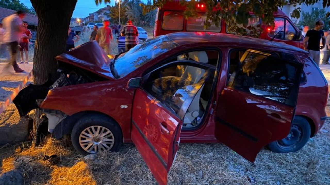 Medine Aksoy (29) idaresindeki otomobil, Emek Mahallesi TOKİ girişi mevkiinde kontrolden çıkarak ağaca çarptı.