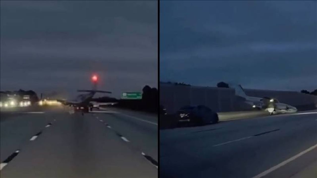 Sosyal medyada otoyola acil iniş yapan uçağın araca çarptığı görüntüler de paylaşıldı.