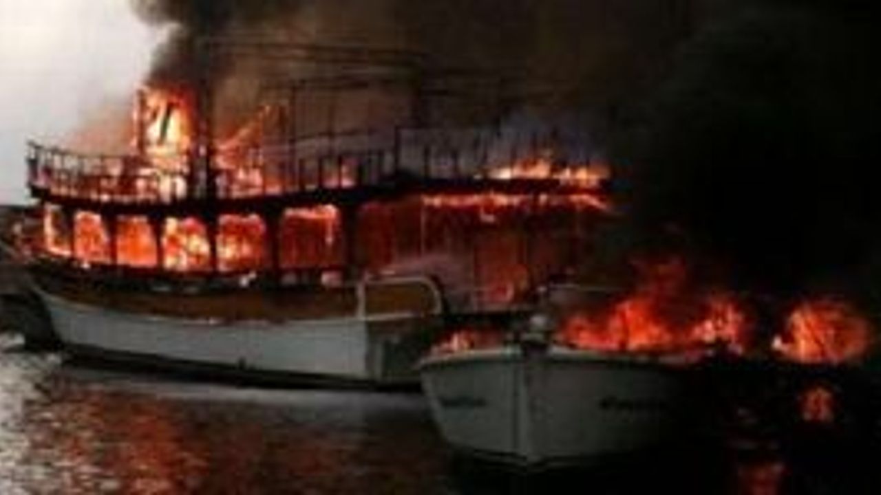 İZMİR - Özdere Balıkçı Barınağı'nda saat 15.30 sıralarında iddiaya göre kaynak yapılan bir günlük mavi tur teknesinde yangın çıktı. Tekneden önce dumanlar yükselirken çevredekiler müdahale etti ancak başarılı olamadı. Rüzgarın da etkisiyle alevler yükselirken bitişiğinde bağlı teknelere de sıçradı.