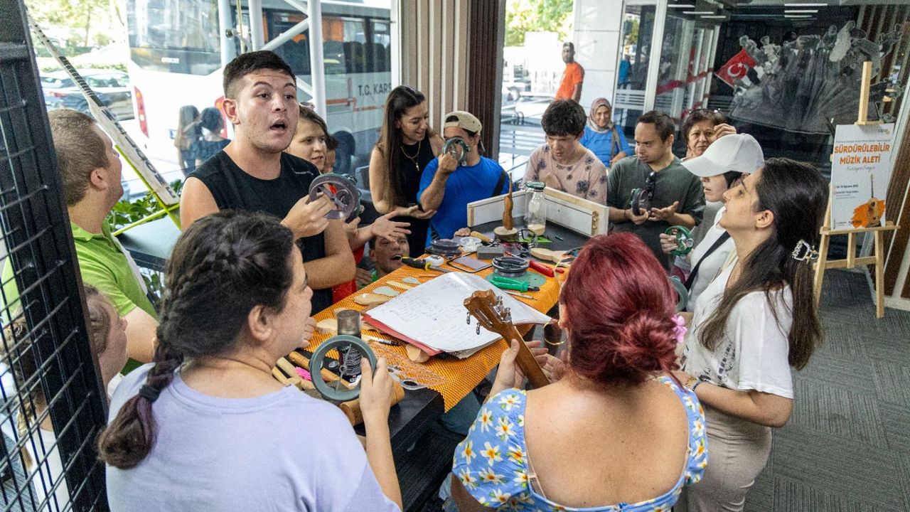 Bu kapsamda; merkez öğrencileri ve velileri, Galeri Alt’ta açılan Sürdürülebilir Müzik Aletleri Sergisi’ni ziyaret etti. Karşıyaka Belediyesi'ne bağlı Mahmure Handan Hanım Müzik Aletleri Yapım Atölyesi katılımcıları tarafından atık ve geri dönüştürülmüş malzemelerle hazırlanan eserleri ilgiyle inceleyen özel bireyler, müziğin birleştirici gücüyle keyifli anlar yaşadı. Atölye eğitmeni Burçin Bayar Babaoğlu’nun sunduğu mini müzik dinletisi de sergi ziyaretine renk kattı. Doğaya duyarlı yaklaşımı ve yaratıcı üretim anlayışıyla dikkat çeken sergi, 15 Ağustos’a kadar Karşıyaka Belediyesi ana hizmet binası giriş katında ziyaret edilebilecek.