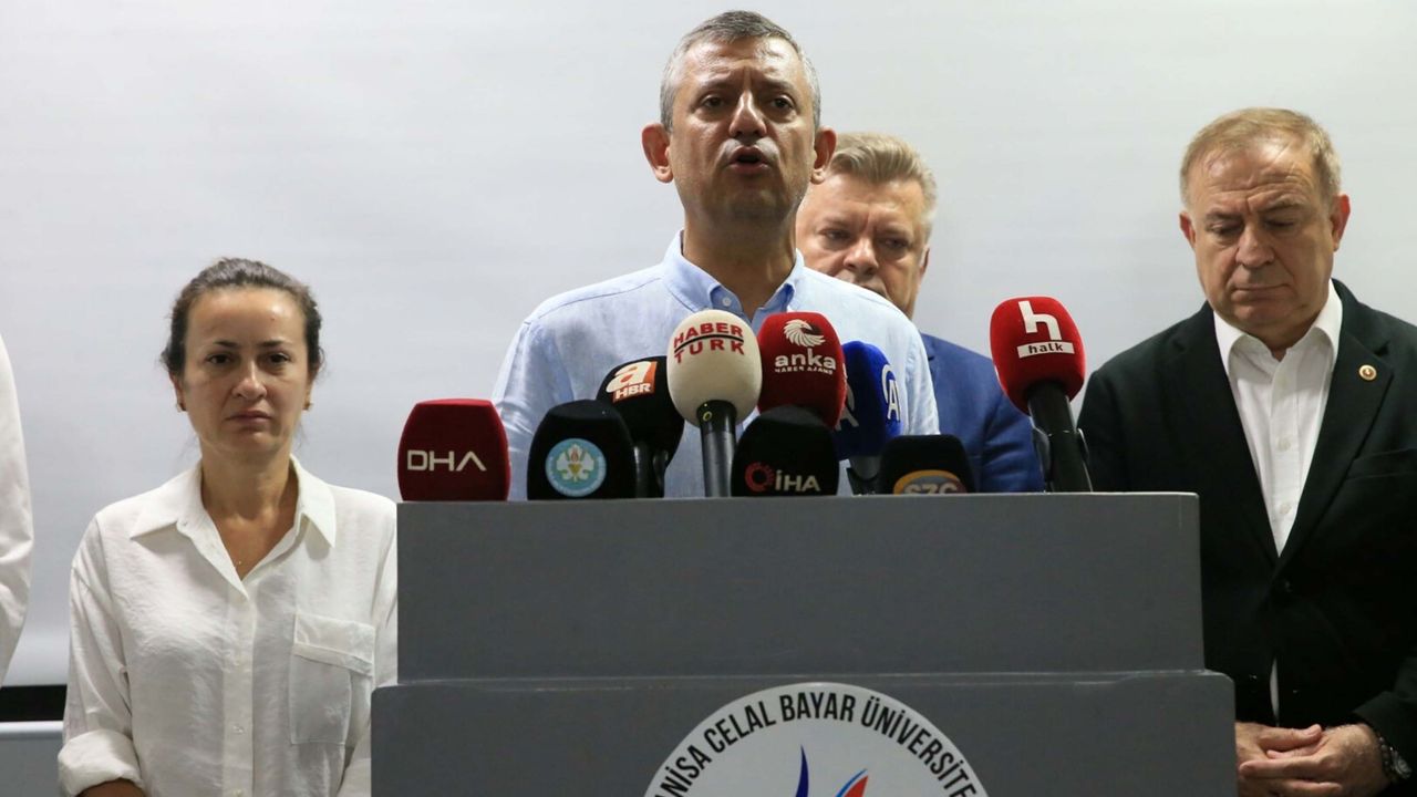 EGEDESONSÖZ- CHP Genel Başkanı Özgür Özel, Manisa'da evinde elektrik akımına kapılan Büyükşehir Belediye Başkanı Ferdi Zeyrek'in bulunduğu Manisa Celal Bayar Üniversitesi Hafsa Sultan Hastanesi'nde Başkan Hekim Prof. Dr. İsmet Topçu ile basın açıklaması yaptı.