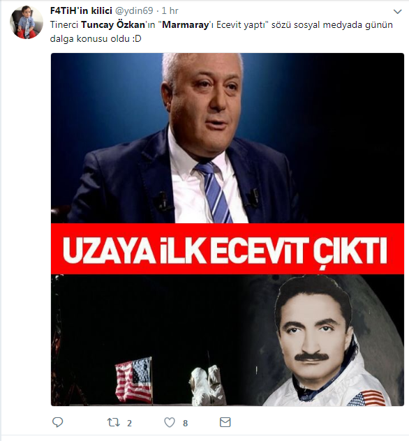 Özkan programda İstanbul'da hizmet veren banliyö treni sistemi 'Marmaray'ın merhum Başbakan Bülent Ecevit tarafından yapıldığını söyledi. Özkan'ın, 'Marmaray'ı Bülent Ecevit yaptı' açıklaması sonrasında sosyal medya adeta yıkıldı. İnşaatı 2004 yılında başlayan ve 2013'te de hizmete açılan Marmaray'ın 2006 yılında vefat eden Ecevit tarafından yapıldığının iddia edilmesi sonrasında yüz binlerce vatandaş sosyal medya hesaplarından paylaşımlarda bulundu.