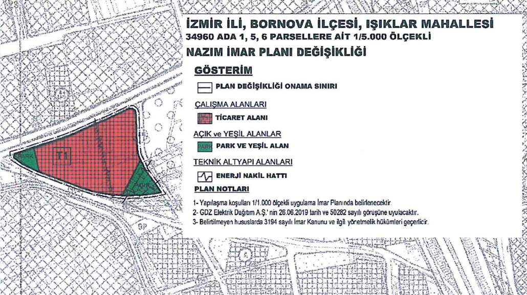 Metehan UD / EGEDESONSÖZ – İzmir Büyükşehir Belediyesi Bornova Işıklar Mahallesi'ndeki sanayi bölgesinde 27 bin 498 metrekare büyüklüğündeki 3 parsele ilişkin 1/5000 ölçekli nazım imar planı değişikliğini yayımladı.
