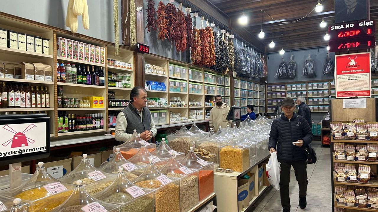 Kemeraltı’nın en büyük baharat ve bakliyat satışlarını yapan Köy Değirmeni dükkanının işletmecisi Abdullah Gökçel, Ramazan ayıyla ilgili değerlendirmelerde bulundu. Gökçel, pandemi sonraki döneme göre en iyi dönemi geçirdiklerini belirterek, “Pandemiden bu zamana bir toparlanma oldu yılbaşından beri. Pandemi sürecinde insanlar birbirlerine gidip gelmeyi bırakmıştı. Şimdilerde ‘misafirim gelecek’ diye hazırlıklar var. Ramazan hazırlığını hissediyoruz. Pandemiden önceki dönemin hızını yakalayamadı henüz ama pandemiden sonraki sürece göre bu sene biraz daha hareketlendi” dedi.