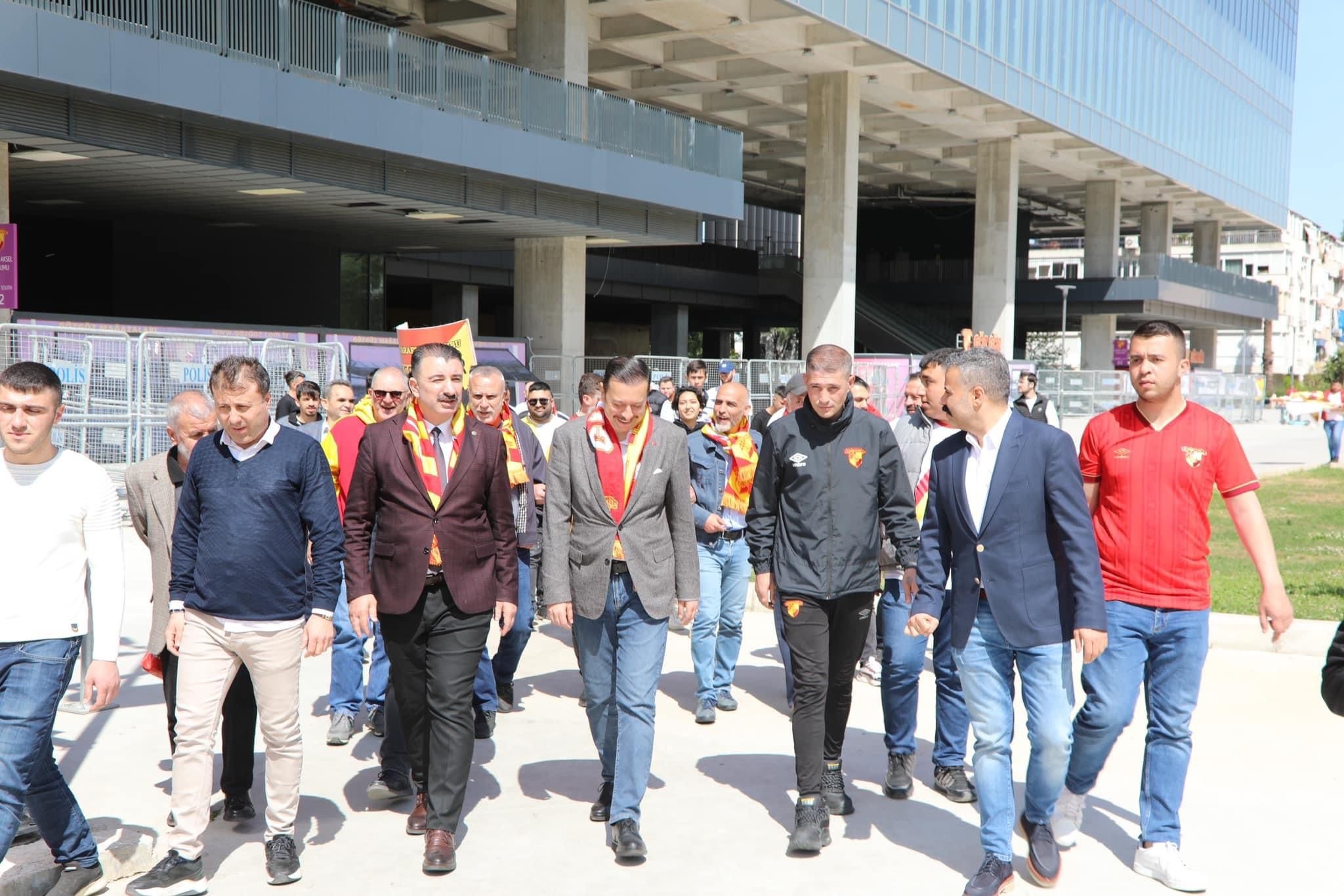Taraftarlara destekleri için teşekkür eden Kaya ise, bugüne kadar olduğu gibi bundan sonra da Göztepe'nin yanında olacağını ifade etti. Göztepe'nin bir taraftarı olarak kulübün ve camianın taleplerini yerine getirme noktasında canla başla çalışmaya devam edeceğini belirten Kaya, 'Ben İzmirliyim, Göztepeliyim. Şanlı Şerefli Göztepe taraftarının bir parçası olmaktan gurur duyuyorum. Biz takımımızın her zaman yanındayız. Bugüne kadar verdiğimiz mücadeleler ortada. Göztepe Gürsel Aksel Stadyumu'nu davalar açarak engellemeye kalktılar, istemediler, yaptırmayız dediler ama biz yaptık. İşte eser burada, Göztepemiz için yükseldi. Torbalı'daki tesisler için tahsis ettirdiğimiz araziyi geri aldılar, içine buğday ekip poz verdiler. Yine engellediler, şimdi taraftarın tepkisiyle geri adım atmış gibi görünüyorlar ama yine yaptırmazlar. Onu da biz çözeriz, kimse merak etmesin. Söz konusu İzmir olunca, söz konusu Göztepemiz olunca geri kalan her şey teferruattır' dedi.