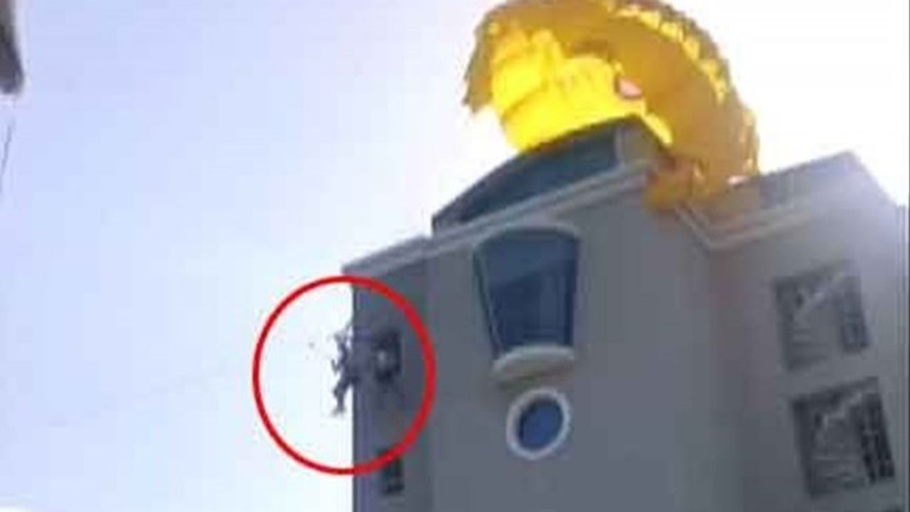 Kayıtta, turistlerden birinin su sporları istasyonu çalışanlarınca otelin üçüncü katındaki balkondan içeriye çekilerek kurtarıldığı görülüyor.