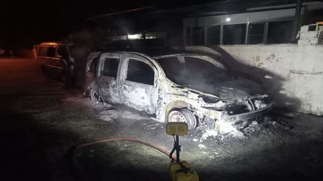 İtfaiye ekiplerinin müdahalesiyle söndürülen yangında iki araç da kullanılamaz hale geldi.
