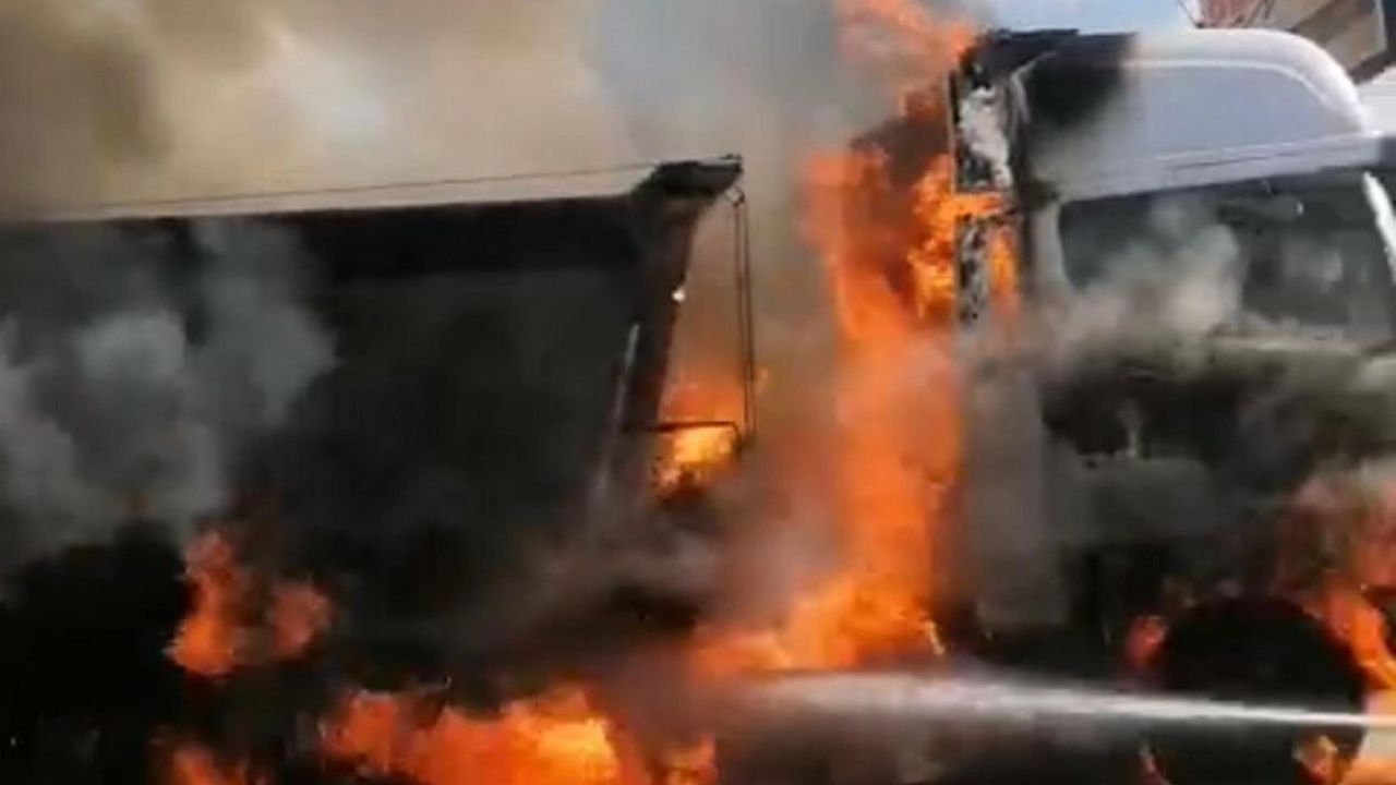 Yangın, saat 20.00 sıralarında Uşak merkeze bağlı İkisaray köyü yakınlarında meydana geldi. Bir iş yerinin önünde park halinde bulunan 64 FM 242 plakalı TIR’da henüz belirlenemeyen nedenle yangın çıktı. Hızla yayılan yangında TIR alev topuna dönüşürken, çevredeki vatandaşların ihbarı üzerinde bölgeye itfaiye ve jandarma ekipleri sevk edildi. İtfaiye ekiplerinin müdahalesiyle yangın söndürülürken, TIR kullanılamaz hale geldi. (DHA)
