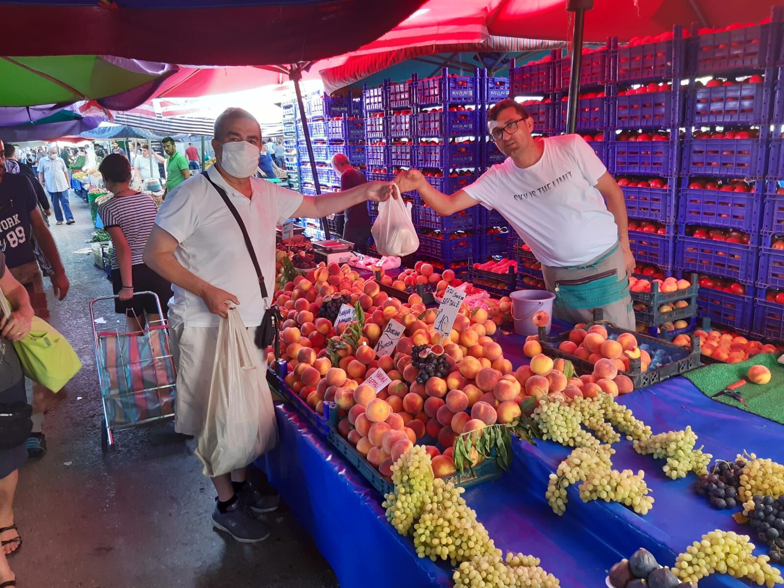 Meyve tezgahlarında da durum, sebze tezgahlarından farklı değildi. Üç hafta önce kilosu 21 liraya kadar yükselen şeftali, hafta sonunda 8 ile 12 lira arasındaydı. Pazarcı Mustafa'ya, şeftalinin neden bu kadar pahalı olduğunu, şu sözlerle anlattı: