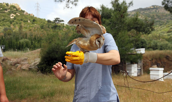 İZMİR - Kargalar tarafından saldırıya uğradığı tahmin edilen Peçeli Baykuş, kanadından yaralanmış ve uçamayacak durumda vatandaşlar tarafından bulundu. Duyarlı vatandaşların girişimiyle tekrar hayata dönen Baykuş, Karşıyaka Belediyesi Veterinerlik İşleri Müdürü Çağlayan İnanlı ve ekibine teslim edildi. Baykuşun kendilerinde yaklaşık 1 hafta kaldığını belirten Çağlayan İnanlı, 'Yapılan tetkiklerde herhangi bir kırık tespit edilmedi. Kanatta bulunan yara için hemen bir tedavi süreci başlatıldı. Sakin bir ortamda yaşam fonksiyonlarının normal hale gelmesi için 1 haftalık rehabilite süreci geçirdi. Şu an için yaşam fonksiyonları, yemesi, içmesi ve çevreye olan tepkileri normal. Baykuşumuzu tekrar doğaya kazandırdığımız için ekip olarak çok mutluyuz' dedi.
