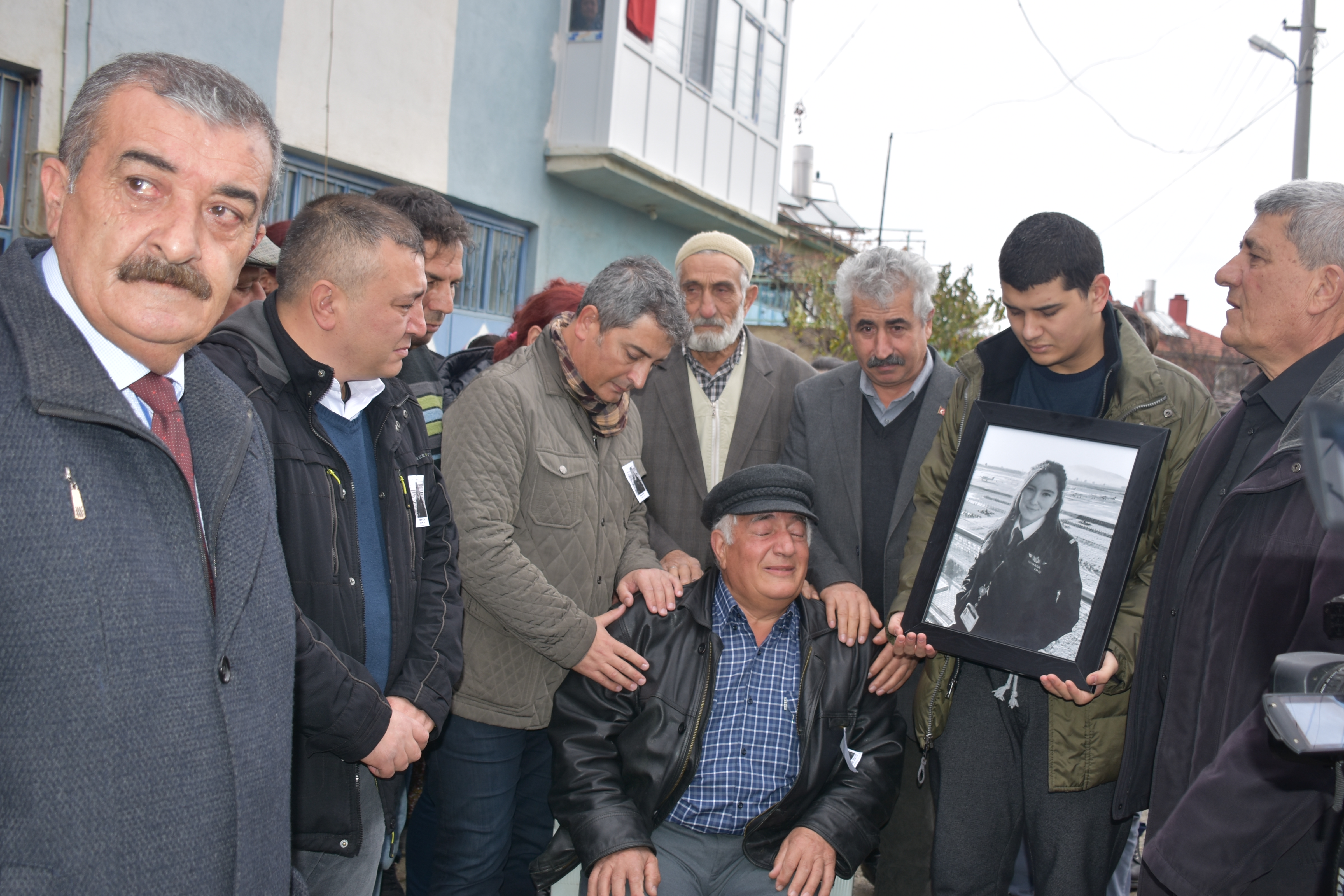 Baba evinin önünde helallik alınmasının ardından Merve Altun'un Türk bayrağına sarılı ve üzerinde 'Şehit pilot Merve Altun' yazan tabutu köy meydanına getirildi.