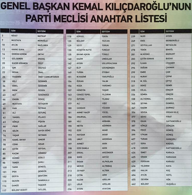 Genel Başkan Kemal Kılıçdaroğlu cephesinden biri 104, diğeri 52 kişilik 2 liste geldi.
