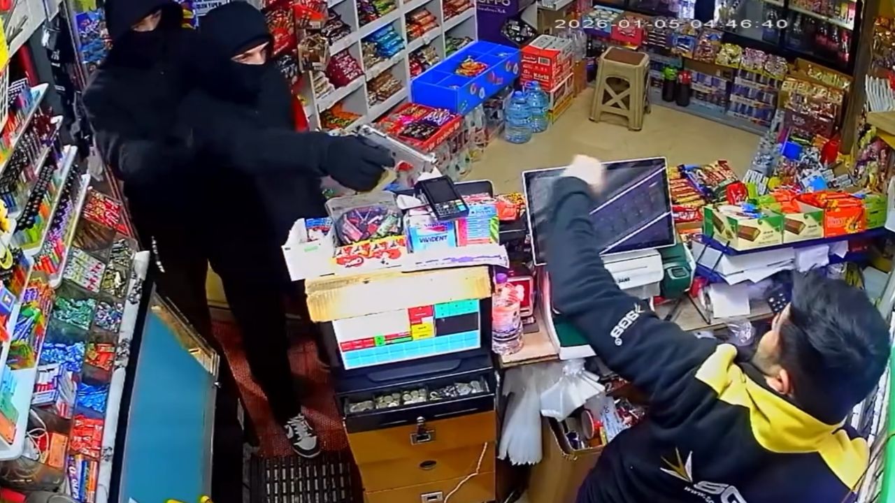 Olay, 5 Ocak'ta saat 05.00 sıralarında, Milli Birlik Caddesi'nde meydana geldi. Markete gelen yüzleri maskeli 2 kişiden biri, elindeki tabancayla iş yeri sahibini tehdit ederek, kasadaki paraları vermesini istedi. Bu sırada diğer şüpheli ise iş yeri sahibine biber gazı sıktı. Kendisini korumaya çalışan iş yeri sahibi ile tabancalı şüpheli arasında arbede yaşandı. Diğer şüpheli ise kasadaki 9 bin 500 lirayı gasbetti. Kısa süreli arbedenin ardından şüpheliler ara sokaklara girerek izlerini kaybettirdi.