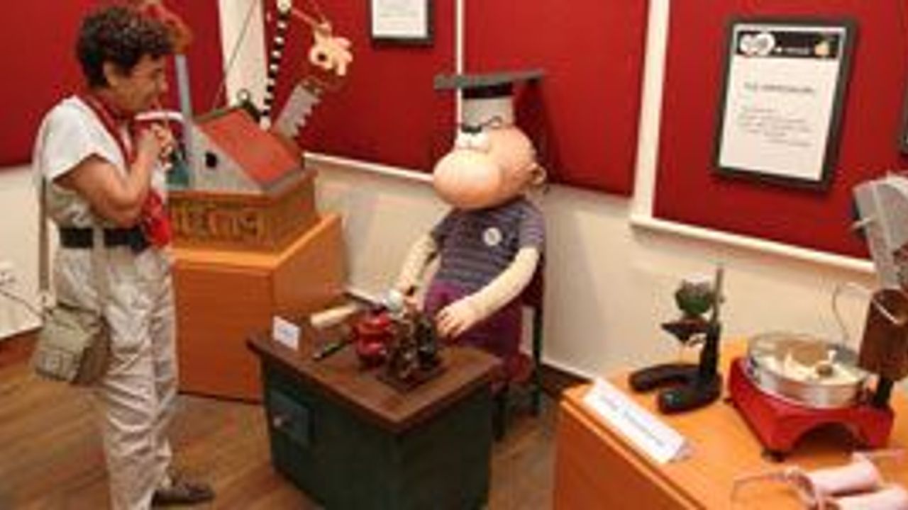 İZMİR - Konak Belediyesi Neşe ve Karikatür Müzesi, aklın sınırlarını zorlayan, yaratıcılığın son noktasında bir sergiye ev sahipliği yapıyor. Teknoloji tutkunu bir karikatürist ve tasarımcı olan İrfan Sayar, 1977 yılından bu yana can verdiği Porof. Zihni Sinir'i İzmir'e getirdi.