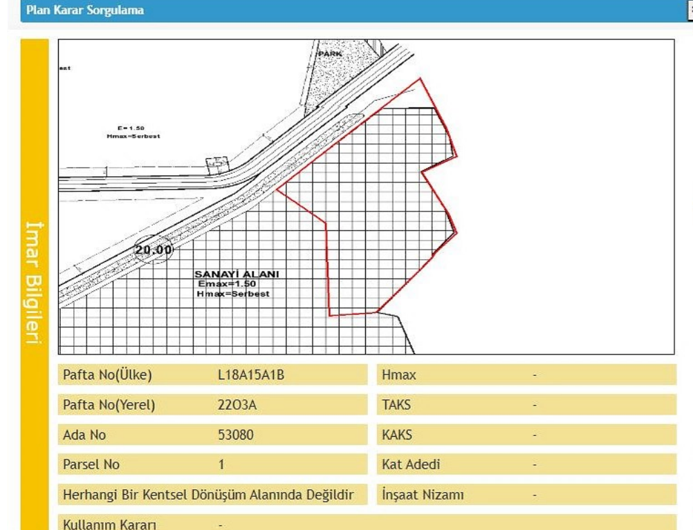 18 bin 69 metrekare büyüklüğündeki 53080 ada 1 parsel, 1,5 emsal hakkına sahip parselin sınırsız yükseklik hakkı da bulunuyor.