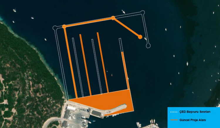 Proje tanıtım dosyasında "ÇED Başvuru aşamasından sonra proje alanının batı sınırında bulunan alan 05.09.2022 tarih ve E.4492950 olur ile “Doğal Sit-Nitelikli Doğal Koruma Alanı” ve “Doğal Sit-Sürdürülebilir Koruma alanı” olarak tescil edilmiştir. Bu kapsamda proje alanı söz konusu “Doğal Sit-Nitelikli Doğal Koruma Alanı” içerisinde kalan yüzer yapılar revize edilerek tescil edilen alan dışına çıkarılmış ve proje alanı ÇED başvuru sınırları içerisinde kalarak küçültülmüştür" ifadeleri yer aldı.