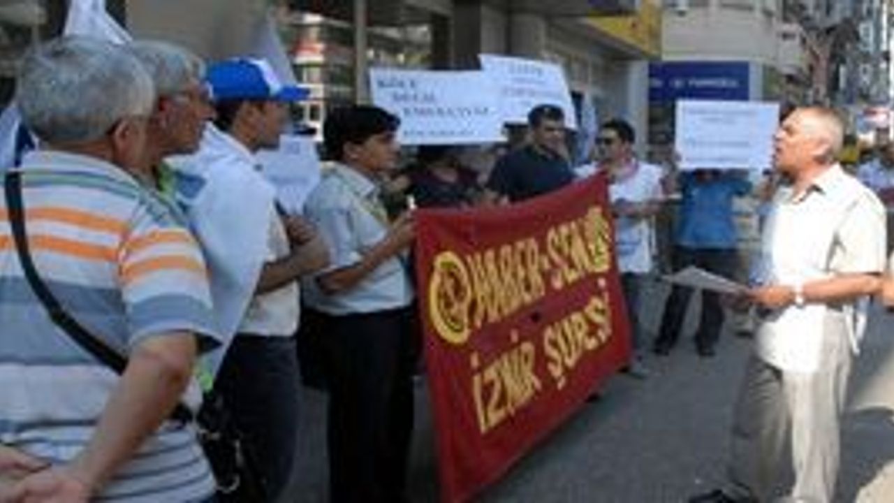 İZMİR - Basmane Meydanı'ndaki PTT binası önünde toplanan Haber-Sen İzmir Şubesi üyesi çalışanları, taşeronlaştırmanın önüne geçilmesi, çalışma şartlarının daha sağlıklı hale getirilmesi taleplerinin yer aldığı döviz ve pankartlar açarak, sloganlar attı.