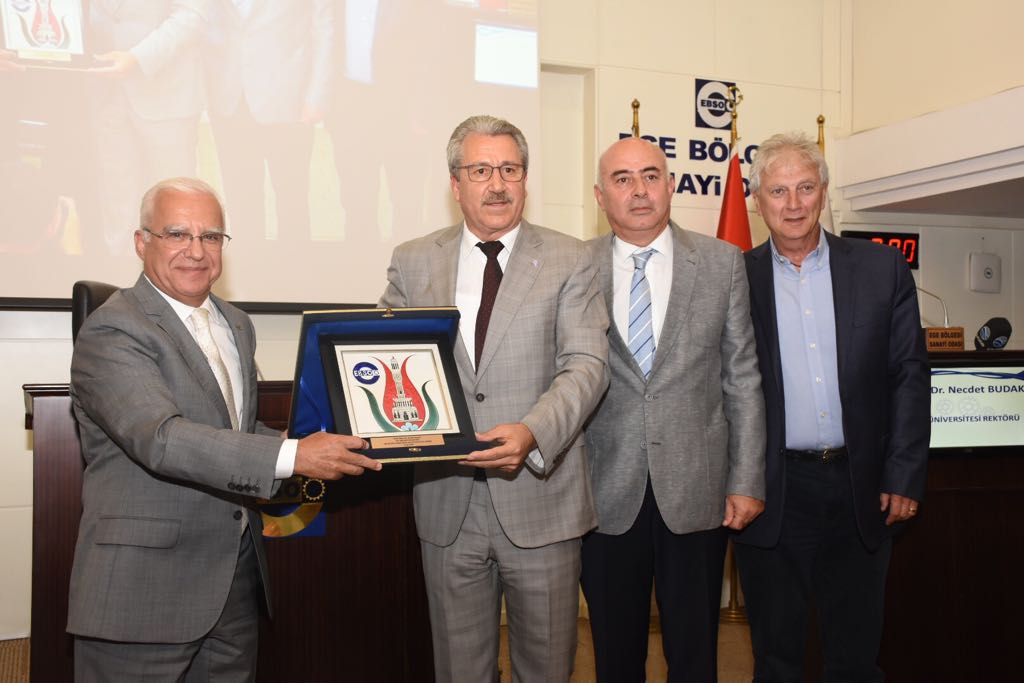 Konuk konuşmacı olarak kürsüye gelen Rektör Budak önemli mesajlar verdi. Budak, 'Bugün Ege Üniversitesi olarak tam kadro buradayız. Davet ettiğiniz için de teşekkür ederim. Dünyada acımasız bir ekonomik rekabet var. Ekonomik bağımsızlığımızı korumamız lazım. Türkiye'nin zenginleşmesi lazım. Bizim ekonomik olarak zenginleşmemiz lazım. Bunun da tek çözüm yolu var. Atatürk'ün dediği gibi bilim… Üniversiteler milli eğitim işin temelidir. Ege Üniversitesi'nin 11 bin 500 çalışanı var. Çok zengin bir akademik kadromuz var. Dünyada ekonomiye istihdam sağlaması adına sizler çok ciddi çalışmalara imza atıyorsunuz. Üniversitenin sanayi ile iş birliği açısından çok önemli olduğu için üniversitemizin potansiyelini sizinle paylaşmak istiyorum. Ege Üniversitesi'nin sizlerle neler yapabileceğini ortaya koymak, özetlemek istiyorum' dedi.