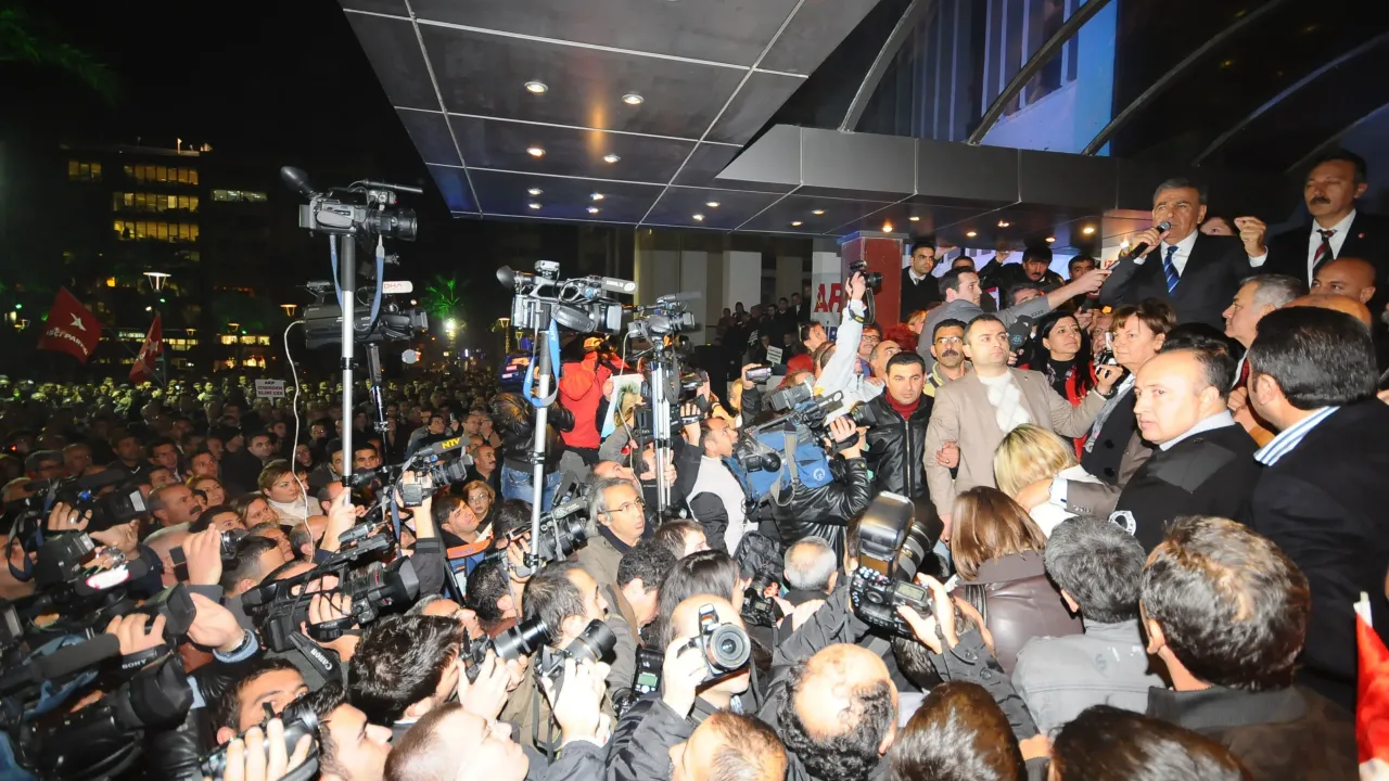 Belediye önünde, aralarında milletvekilleri ve CHP yöneticilerinin de bulunduğu büyük bir kalabalık bekliyordu onu. Havaalanında bir açıklama yapmamıştı ama burada herkes konuşmasını, bir şeyler söylemesini istiyordu. O da öyle yaptı. Hemen bir ses düzeni kurulmasını istedi çalışma arkadaşlarından. Hava kararmaya başlarken, işten çıkıp evlerine gidebilmek için Konak vapur iskelesine, metro istasyonuna ve otobüs duraklarına doğru yol olan İzmirliler de karışmıştı kalabalığa…