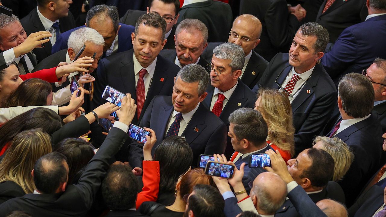 Geçen yıl resepsiyona katılmaması anımsatılan CHP lideri Özgür Özel “Biz burada ev sahibiyiz. Geçen yıl 19 Mart darbesinin hemen ardındaydı ve İstanbul’daydık. Yoksa burada ev sahibiyiz. Resepsiyona katılmama gibi bir durum olmaz” dedi. Ankara Büyükşehir Belediye Başkanı Mansur Yavaş ile yaptığı görüşme sorulan CHP lideri Özgür Özel “Pazar günü telefonda görüştük. Dün akşam genel merkezde 1-1.5 saat sohbet ettik. Genel olarak belediyelere karşı bu kadar haksız, hukuksuz bir saldırı varken artık buna hiçbirimiz dayanamıyoruz. Bugün 23 Nisan, sabah 8.15’te Onursal Adıgüzel’in eşi ve kızı Silivri Cezaevi’ne gidiyordu. Bu hiçbirimizin kaldırabileceği bir şey değil. Bu kadar mücadele ediyoruz, başka ne yaparız onu değerlendirdik. Millet elinize bir bayrak verdiyse onu bırakmayacaksınız. O yüzden Meclis’te, yerel yönetimlerde, partimizde bayrak elimizde. Görevimizin başındayız. ‘Görevlerini bırakacaklar...’ Öyle bir seçeneğimiz yok. Protesto yapabiliriz ama milletin verdiği bayrağı bırakmayız. Mansur Bey de öyle bir düşüncesi olmadığını söyledi. Çok derinlemesine bir takım hukuki çalışmalar yapmayı bundan sonra yapılan haksızlıkları daha görünür kılmayı, millete daha doğru ve görünür şekilde antabilecek her platformu kullanmayı değerlendirdik” ifadelerini kullandı.