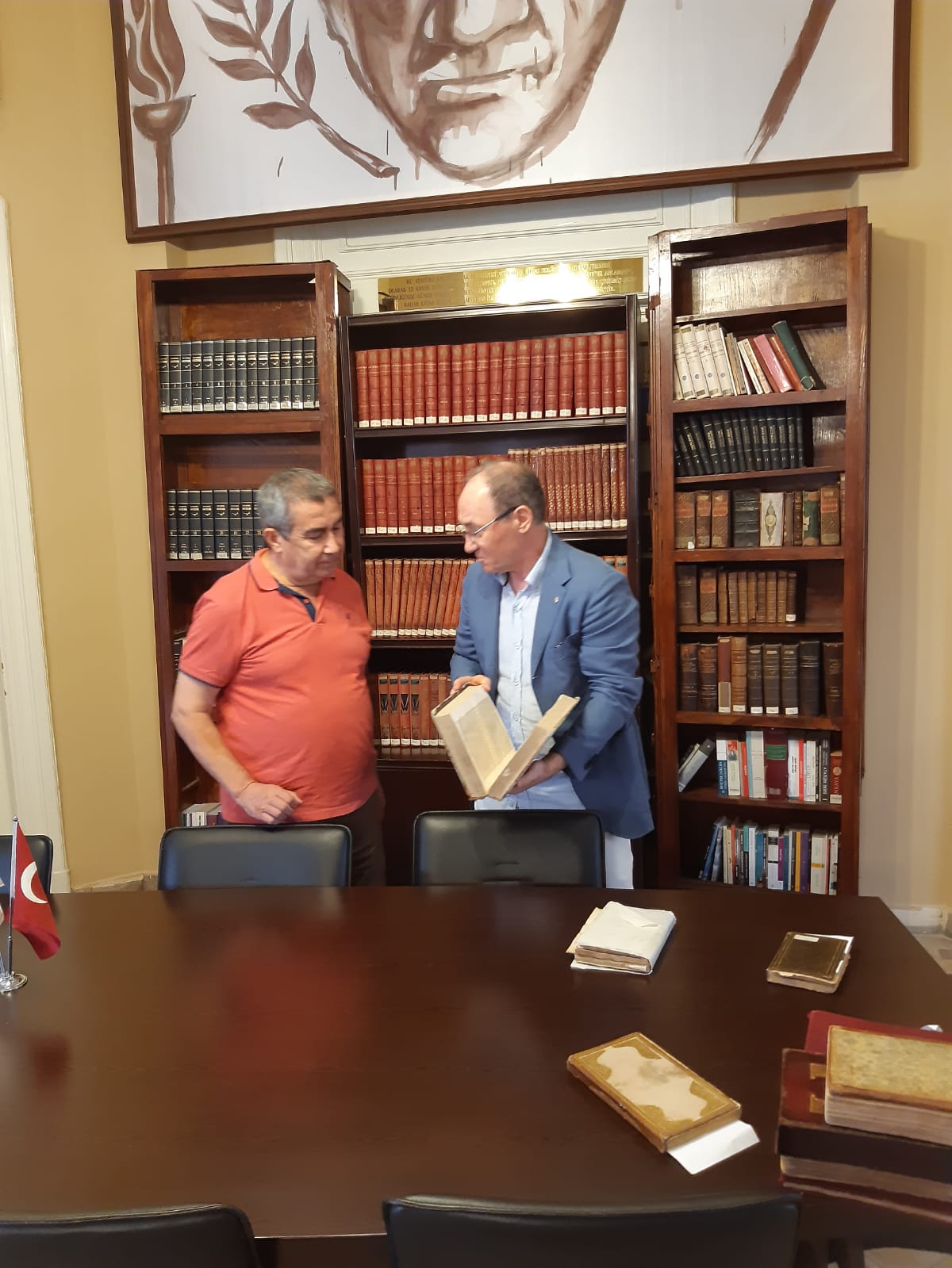 İzmir Milli Kütüphane Vakfı Başkanı Ulvi Puğ, gazeteci Muhittin Akbel'e "İzmir'in hazinesi"ni açtı.