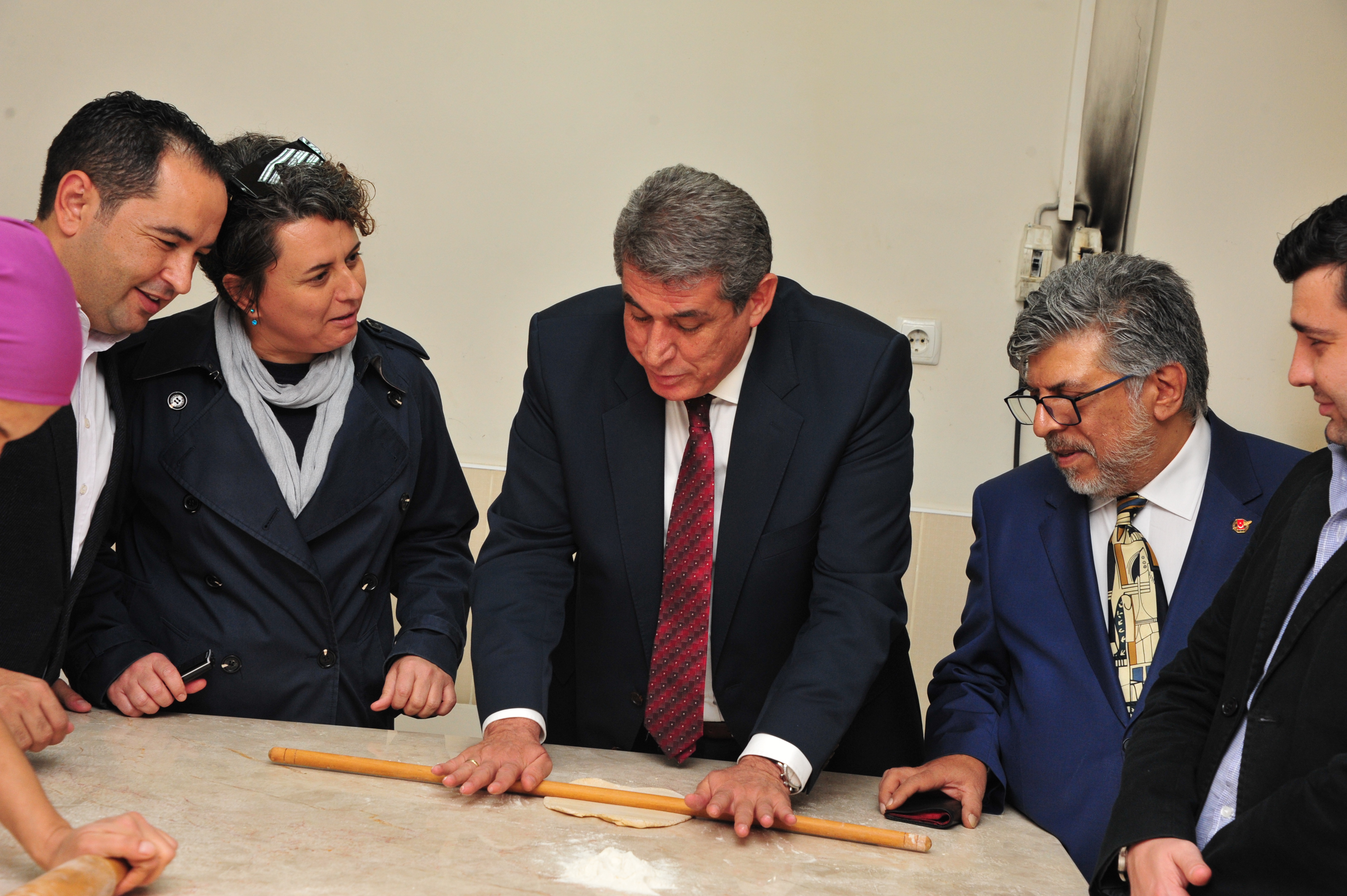 Hamur açmadaki hünerini gösterdi.