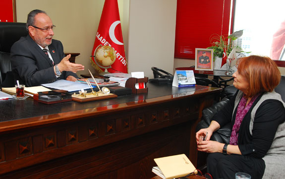 ÖZÜDOÐRU: 2009'da edilmedi. 2004'de edildi. Biz 2004 seçimlerini yüzde 100 Allahın izniyle kazanacaktık. Seçime iki gün kala bir kalp krizi… Hiçbir şey garanti değil hayatta. 2004 AKP'li arkadaşlar daha o zaman yeni seçime giriyorlardı. İki gün kala kalp krizi geçirmeden önce 'Başkanım AKP rüzgarı Türkiye'de esiyor. Biz sizi çok seviyoruz. Sizin bize çok emeğiniz var. Sizi aday yapalım. Yoksa Saadet'ten girince siz kaybedeceksiniz. Teklif ettiler. Ben 'bir oyum var. Bir de karımın bir oyu var'. Teşekkür ettim. İzmir'in en yetkili ismiydi. İsim söylemek istemiyorum. Bunu bir teveccüh kabul ettim ama teşekkür ederim dedim. Sonra bölünmelerine yakın bir zamanda bana milletvekili ve bakanlık teklif ettiler. Dönüp bakmadım. Ben bir inanç uğruna siyaseti yapıyorum, bir ilke uğruna yapıyorum. Ben inancımı dünyada kupkuru kalacak bir makam uğruna terk edemem. DSP'den teklif geldi, CHP'den geldi. Çok partiden teklif etti. Ben hepsine buradan da teşekkür ediyorum. Bu benim için onurdur. Bizim tabanla bir derdimiz yok Gönül hanım. Tabandaki bütün insanlar benim kardeşimdir. Tepedekiler tepişiyorlar. Tepedekilerin gerilimi tabana yansıyor. Onların daha sakin, soğukkanlı, kucaklayıcı olması lazım.
