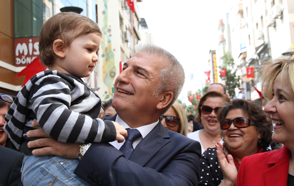 Kimse bana kaşının üstünde gözün var diyemez. Belediye Başkanı'na hırsız dediler, yapamadılar. Üçkağıtçı dediler, ihale dağıtıyor dediler. İsimsiz mektuplarla yüzlerce soruşturma geçirdim. Bir sürü davalar açıldı. Şüphesiz ki, hepsi boş çıktı. Bir tesis yapıyorsunuz, Başkan buranın ortağı diyorlar. Sürekli size dalan, gagalayan bir yapı. Ama bugün oylar neden yükseliyor? Yüzde 75'lere yürüyoruz. Çünkü benim elimde sadece vatandaş var, çünkü ben Karşıyakalı hemşerilerimle hizmette buluşuyorum. O dar grubun içinde değilim ama vatandaşın içindeyim. Herkes elini vicdanına koyacak. Biz CHP olarak 1994'ten 2004'e kadar burada iktidarda değildik. Cevat Durak 2004'te yüzde 50 oy ile geldi, 2009'da yüzde 65'e getirdi. Bu dönem seçimlerde yüzde 75'i hedefliyor.